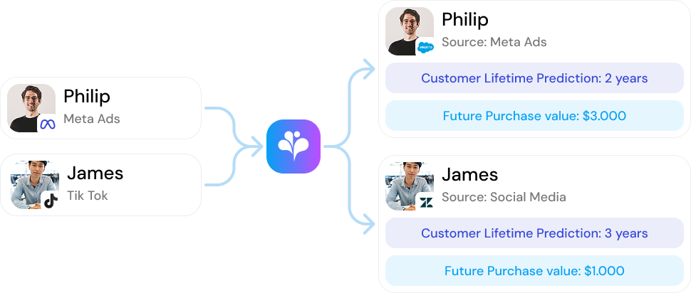BigProfiles predice la duración futura de la relación con cada cliente y su Customer Lifetime Value (CLV) futuro.