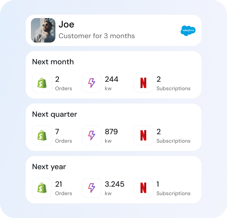 BigProfiles se integra con tu CRM para activar en tiempo real recorridos de prevención de abandono con ofertas y canales personalizados, así como la mejor acción siguiente (Next Best Action) para maximizar la retención.